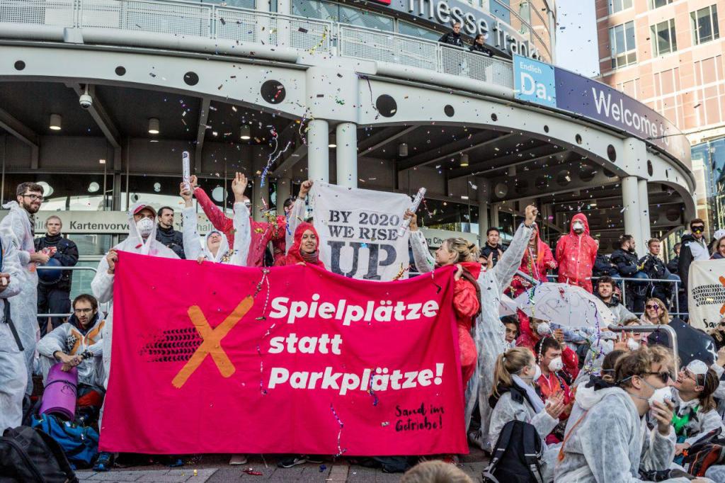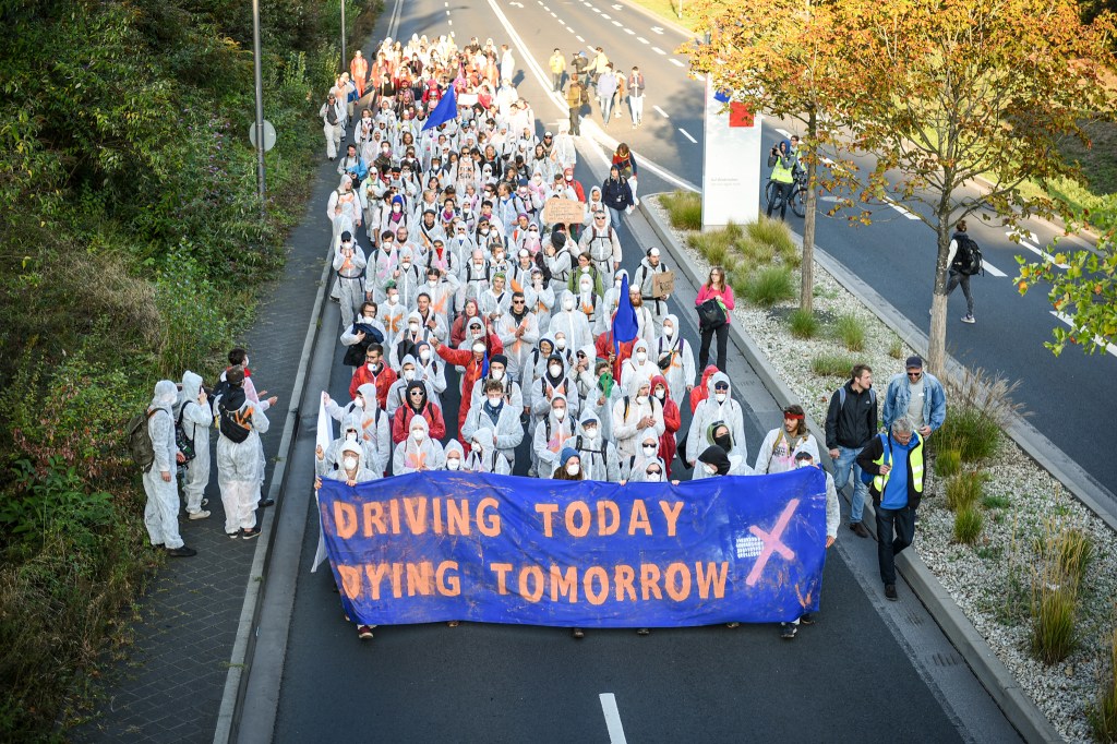Das war ein grandioses Wochenende für die Verkehrswende-Bewegung: Am Samstag, 14.9., demonstrierten in Frankfurt rund 25.000 Menschen auf einer riesigen Fahrradsternfahrt und einer Großdemo gegen das System Auto. Am Sonntag dann wurden mehrere Eingänge der Internationalen Automobilausstellung (IAA), die an diesem Wochenende für Besucher*innen eröffnet wurde, mit friedlichen Sitzblockaden von rund 1000 Menschen blockiert – darunter natürlich viele von KligK. Mit dieser ersten Massenaktion zivilen Ungehorsams zum Thema Verkehr haben wir unter dem Motto „Sand im Getriebe“ der Öffentlichkeit klar gemacht, dass es heutzutage keine ungestörte Show der klimazerstörerischen Autoindustrie mehr geben kann. Mit ungehorsamem, entschiedenem legitimen Protest prangern wir Zukunftsunfähigkeit und Betrug der Autoindustrie und CO2-Emissionen, unverschämten Platzanspruch, Gefährlichkeit und Lärm des Autoverkehrs an. Das Auto muss vor allem in Städten massiv zurückgedrängt werden!