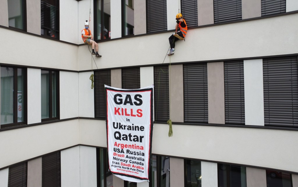 Banner-Aktion gegen Erdgas bei Wintershall
