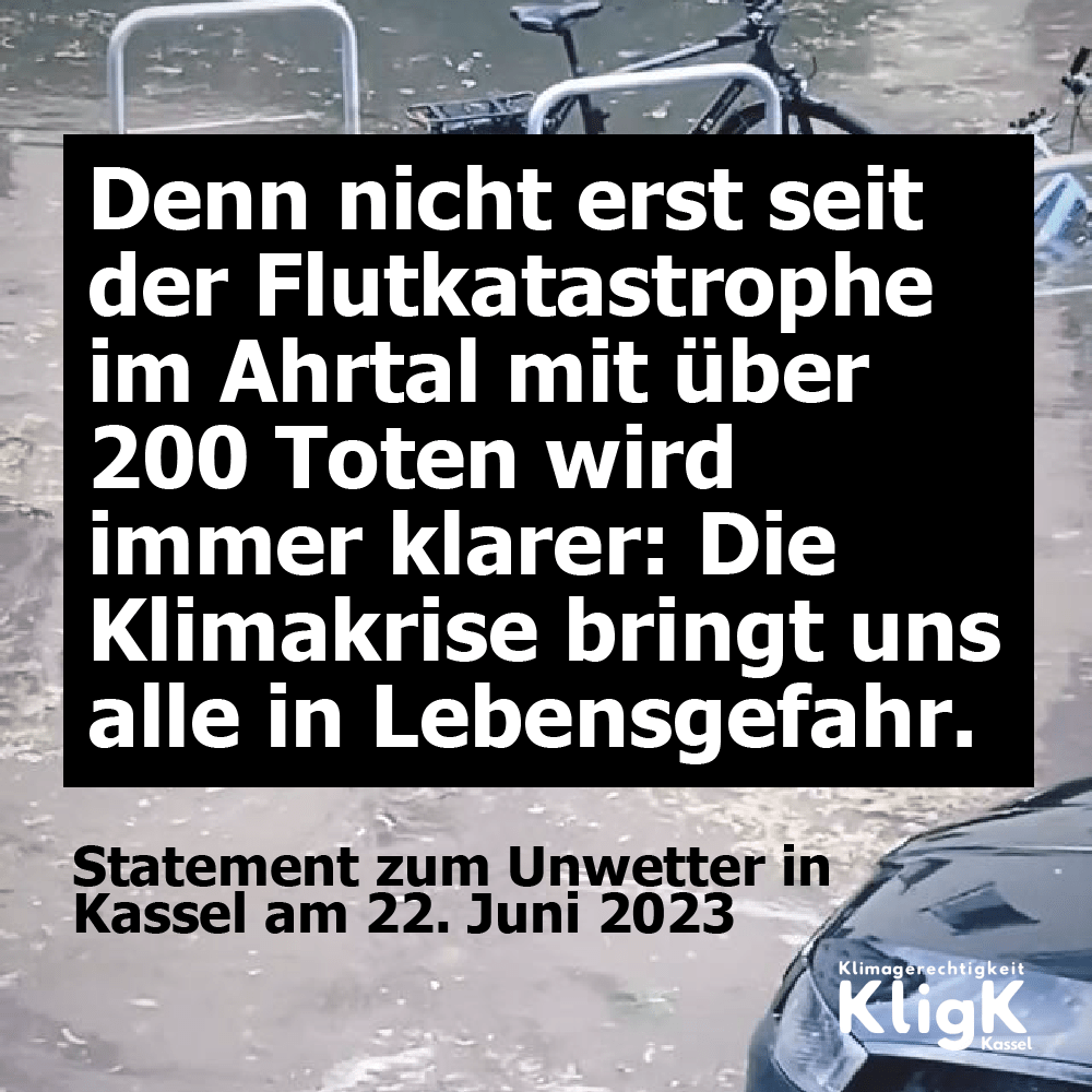 Nach wochenlanger Dürre und niederdrückendem Hitzesommer brach heute ein schweres Unwetter über Kassel und Nordhessen herein. Zahlreiche Menschen wurden verletzt und viele Millionen an Schäden verursacht. Dazu kommentiert Mila Kranke von Klimagerechtigkeit Kassel: „Wir alle sind besorgt und verängstigt angesichts der Gefahren, welche die Klimakrise uns bringt. Als Gesellschaft müssen wir uns wappnen gegen die … Weiterlesen Klimakatastrophe bricht über Kassel herein