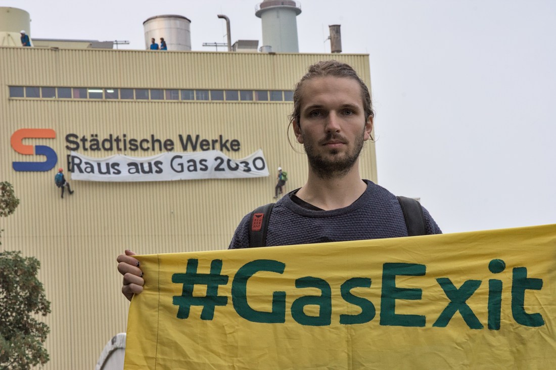 Klimaaktivist*innen fordern „Raus aus Gas bis 2030“ Kassel, 18.08.2023. Heute Morgen entrollten Aktivist:innen von Klimagerechtigkeit Kassel ein großes Banner vom Dach des Kasseler Gaskraftwerks. Direkt unter dem dortigen Logo der Städtischen Werke steht dadurch in großen Lettern „Raus aus Gas 2030“. Die Klimaschützer:innen fordern, dass im Einklang mit der beschlossenen Klimaneutralität Kassels das Gaskraftwerk bis … Weiterlesen Besetzung des Kasseler Gaskraftwerks mit Kletter-Banner