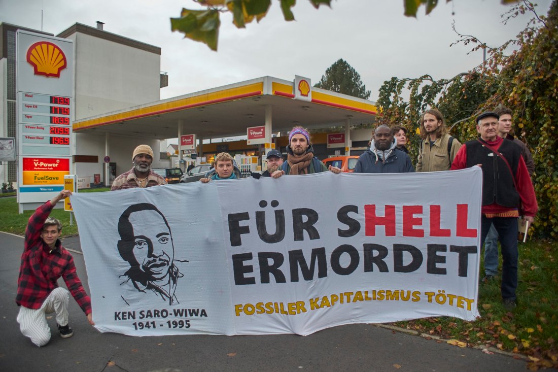 Am 10.11.23, dem 28. Jahrestag ihrer Hinrichtung, erinnern Aktivist*innen vom Verein Concerned Nigerians Germany e.V. und Klimagerechtigkeit Kassel (KligK) vor der Shell-Tankstelle an der Wilhelmshöher Allee 295 an die Ogoni 9. Ken Saro-Wiwa (Schriftsteller und Umweltaktivist) starb am Galgen. Zusammen mit Barinem Kiobel, Saturday Dobee, Paul Levura, Nordu Eawo, Felix Nuate, Daniel Gbokoo, John Kpuinen … Weiterlesen Mahnwache zum Gedenken an die 1995 von Shell in Nigeria getöteten „Ogoni 9“
