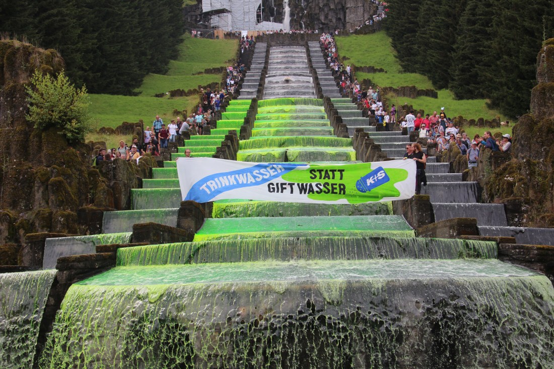 Kassel, 04. August 2024 – Während der heutigen Wasserspiele lief plötzlich giftgrünes Wasser die Kaskaden im Weltkulturerbe Bergpark Wilhelmshöhe herunter. Gleichzeitig entrolltenAktivistinnen von Klimagerechtigkeit Kassel ein Banner, auf dem: ‚Trinkwasser statt Giftwasser‘ zu lesen war. Die Aktivistinnen fordern ein Ende der Salzverseuchung des Naturerbes weltweit und insbesondere der Werra durch K+S. Dafür bedarf es einer … Weiterlesen Grüne Wasserspiele – Klimagerechtigkeit Kassel macht auf Wasserverschmutzung durch K+S aufmerksam
